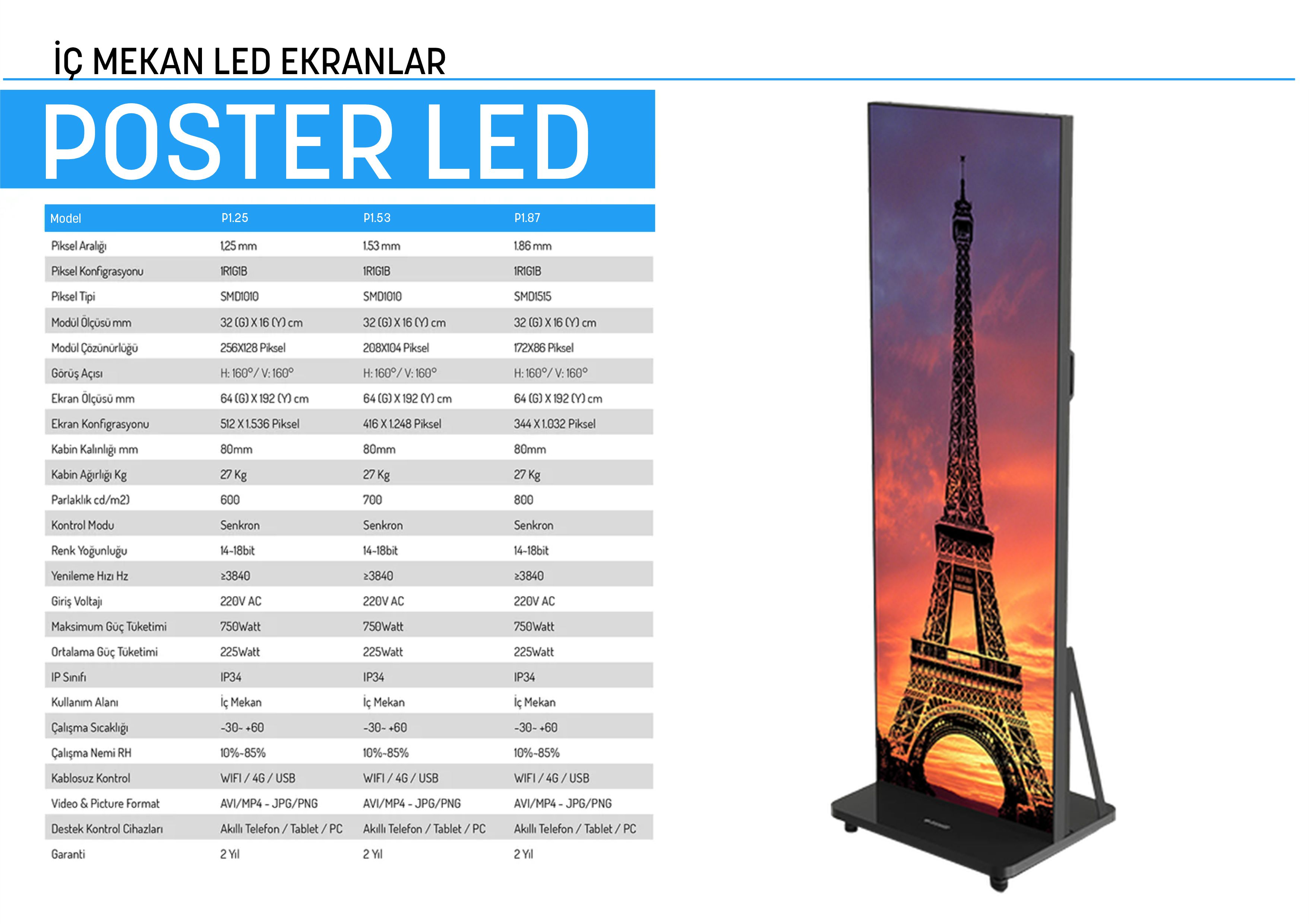 Poster LED ekranlar, geleneksel reklam yöntemlerine göre daha dikkat çekici ve etkileyici bir iletişim sağlar. Yüksek çözünürlüklü görseller, canlı renkler ve hareketli animasyonlar sayesinde, hedef kitlede daha kalıcı bir izlenim bırakır.